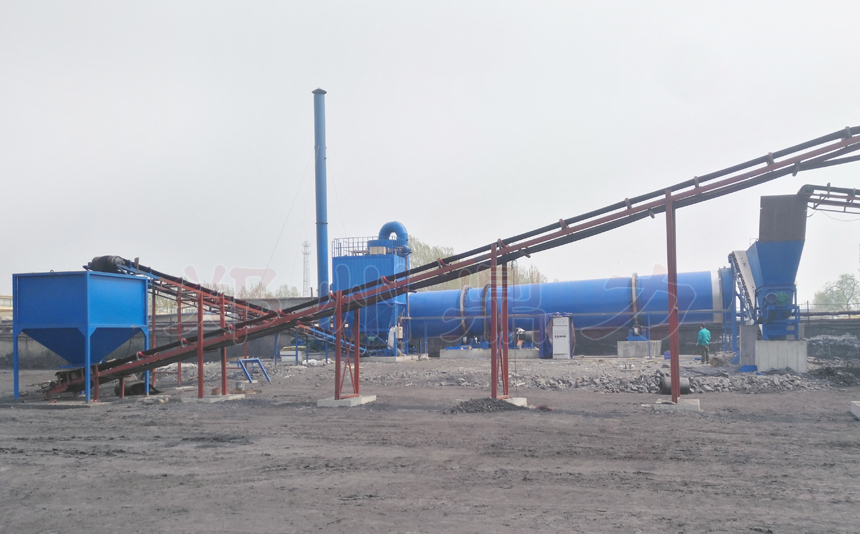 鼎力煤炭烘干機(jī)主要由熱源、喂料裝置、帶式上料機(jī)、回轉(zhuǎn)滾筒、帶式出料機(jī)、引風(fēng)機(jī)、除塵器和配電柜構(gòu)成。