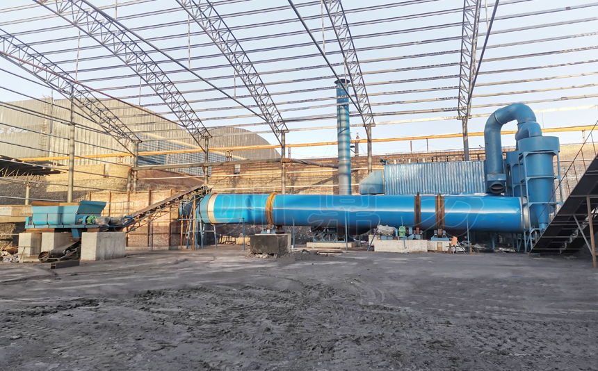 鼎力煤泥烘干機主要由熱源、喂料裝置、帶式上料機、回轉滾筒、帶式出料機、引風機、除塵器和配電柜構成。