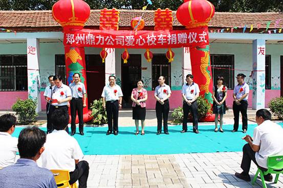 2013年7月9日上午,鄭州鼎力公司向商丘市民權縣幼兒園捐贈愛心校車儀式在孫六鎮伏土山幼兒園舉行,出席捐贈儀式的有民權縣領導陳春燕常委、縣紀委書記劉博、副縣長孟祥亮和鄭州鼎力公司總經理。