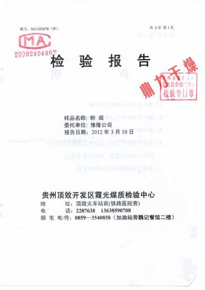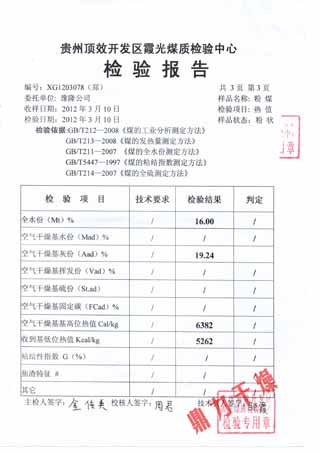 褐煤烘干成品檢測報告