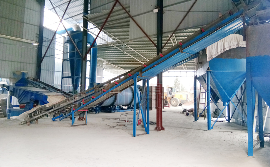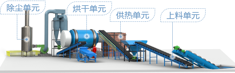 河砂烘干機生產(chǎn)線組成:熱源系統(tǒng)、給料系統(tǒng)、輸送皮帶、進料溜槽、烘干設備、出料皮帶、振動分級篩,除塵系統(tǒng)、引風機、電控系統(tǒng)等設備。